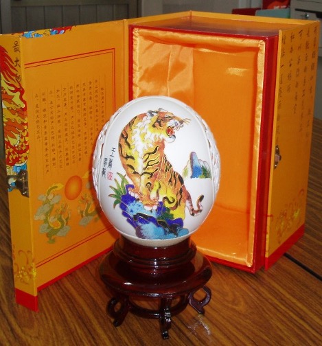 四、蛋殼更不可多得的工藝品之天然質材,可雕刻或繪畫成各種精巧、高貴的裝飾擺設工藝品。